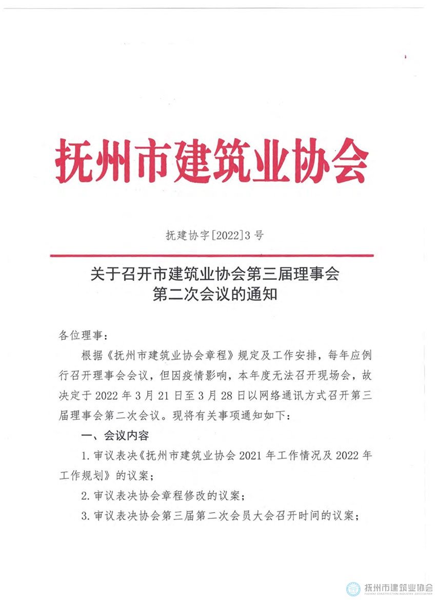 关于召开市建筑业协会第三届理事会第二次会议的通知